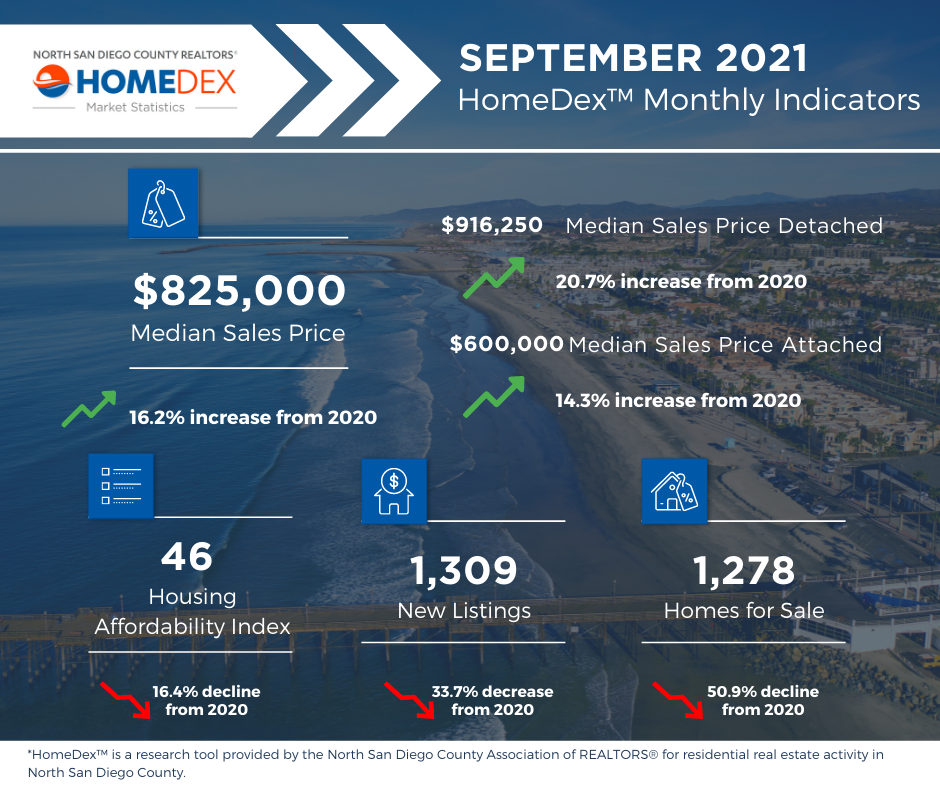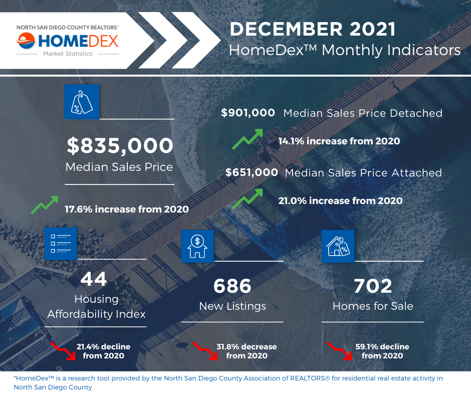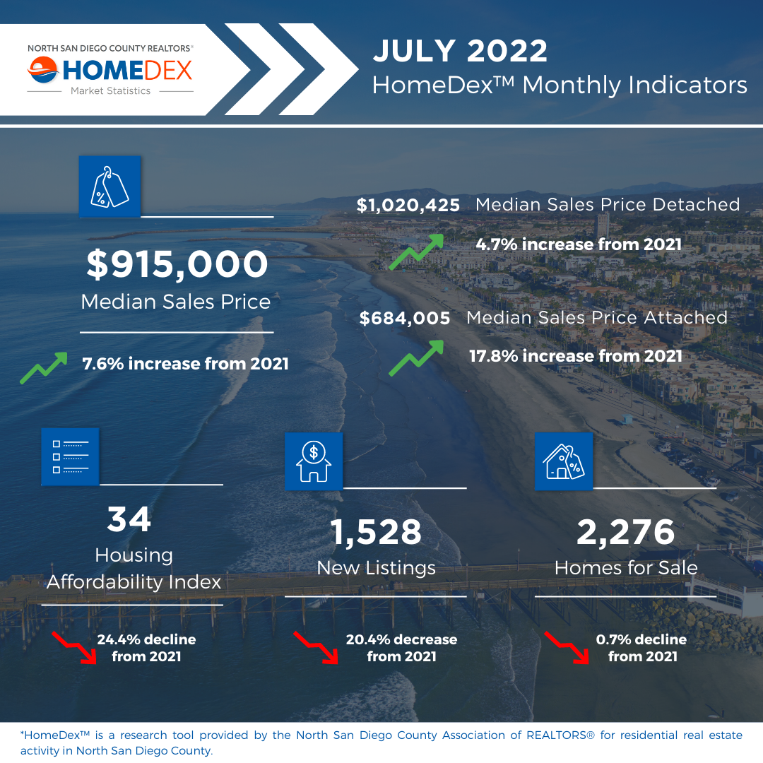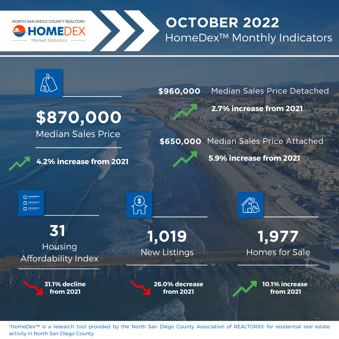 HomeDex™, a service provided by 10k Research, is the most comprehensive source of real estate data for North San Diego County. From key metrics, including new listings, pending sales, days on the market, and median sales prices, HomeDex™ provides monthly and yearly rolling insight into detached single-family and attached single-family homes.
