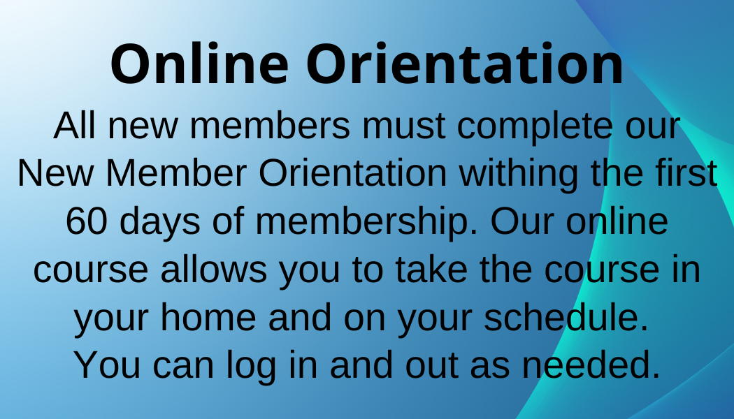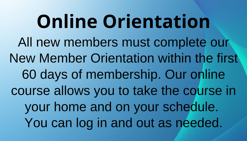 Online Orientation: Complete your orientation at your convenience. Check your welcome email for login credentials.