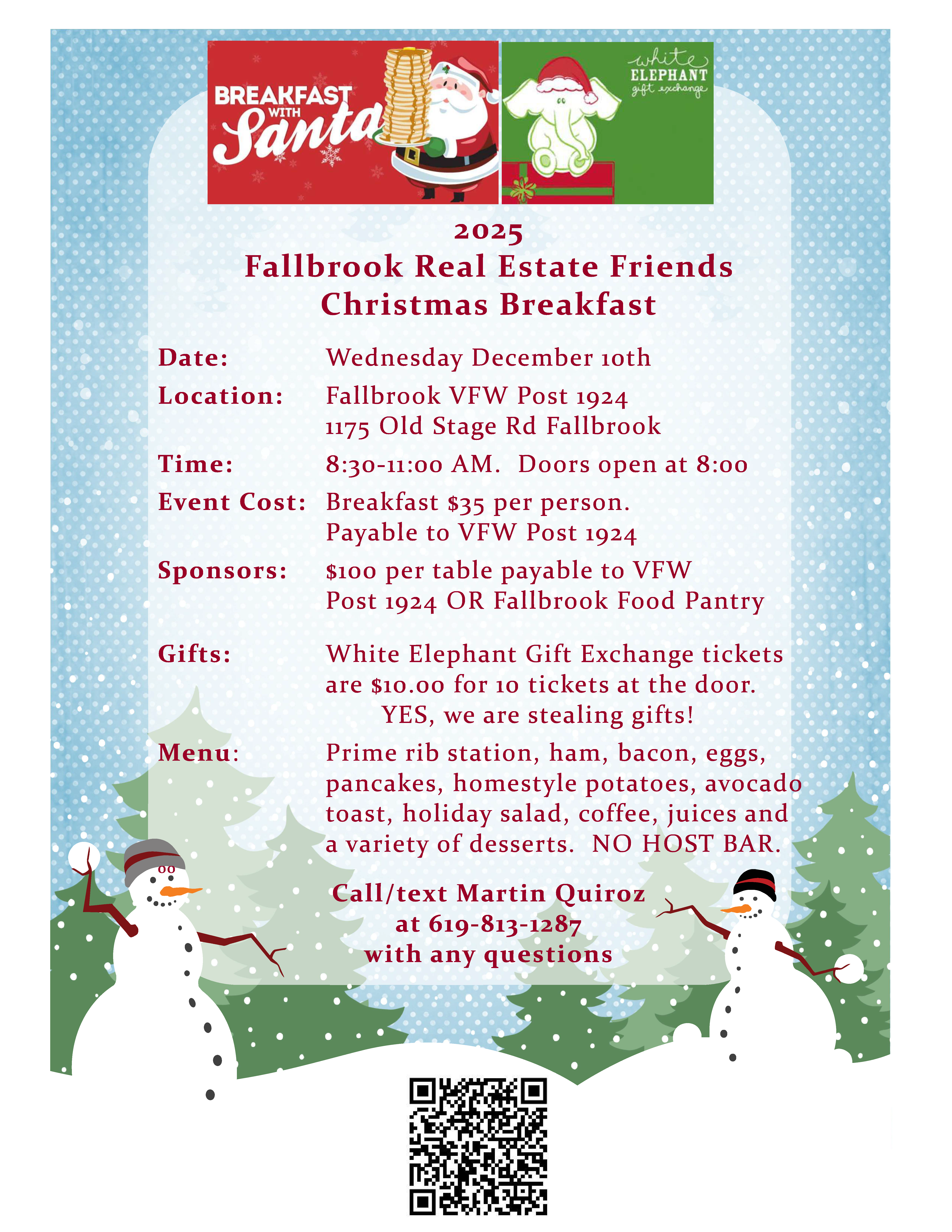 Sponsorships: $100 per table (benefits VFW Post 1924 or Fallbrook Food Pantry)
